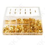 Otsikud on pakendatud läbupaistvatesse lahtritesse, sorteeritud suuruse järgi. Sisaldab: Isane pistik 6,4 - 100 tk. Emane pistik 6,4 - 100 tk. Isane pistik 4,8 - 100 tk. Emane pistik 4,8 - 100 tk. Isane pistik 2,8 - 100 tk. Emane pistik 2,8 - 100 tk. Auguga 3,2 - 30 tk. Auguga 5,2 - 30tk. Auguga 6,2 - 30tk. Auguga 8,2 - 30tk. Auguga 10,5 - 30 tk. Pakendi suurus: 207 x 105 x 29 mm.