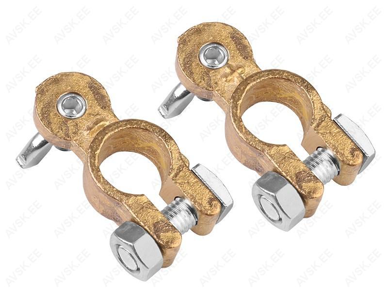 Messingist akuklemmid (kuni 600 A). sobivad igat tüüpi 6-12-24 V mootorsõidukites kasutatavatele akudele.