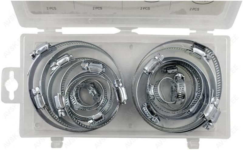 Universaalne lõdvikuklambrite komplekt. Sisaldab kõiki enamlevinud lõdvikuklambreid sõiduautole ja crossoverile. Lõigatud keermesprofiil. galvaaniliselt kaetud. Komplektis mõõdud max 19-25-32-43-50-62-76-90-100 mm.