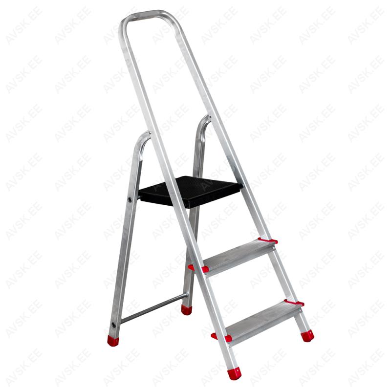 The Hobby series single-sided aluminum stepladder is designed for home use. It features a lightweight and strong construction, ensuring easy portability and storage. The ladder is equipped with a convenient platform that makes working at heights safe. An ideal tool for various household tasks.