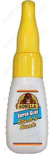 Gorilla Brush & Nozzle kiirliim on ideaalne kiireteks ja täpseteks parandustöödeks. Selle kaks eriti tõhusat pealekandmisviisi. kas pintsli või täpsusotsakuga. tagavad täieliku kontrolli ning muudavad liimi kasutamise ülimalt lihtsaks. Brush & Nozzle liim kuivab 10-45 sekundi jooksul ning selle läbipaistev koostis on loodud kulumis- ja purunemiskindlaks. Liimib pea igat materjali - plastikut. metalli. kivi. tekstiili. paberit. kummi. keraamikat jpm.