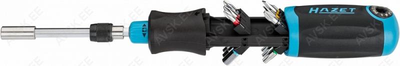 Ühesuuna siduriga. Suund on muudetav. Otsikuid hoiustatakse käepideme sees.