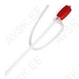 See on väga mugav, tänu oma kompaktsetele mõõtmetele on seda lihtne kaasas kanda. See on ideaalne kõikjal, kus on vaja kiiresti vedelikku ühest anumast teise pumbata. Väga lihtne kasutada, lihtsalt asetage pumba üks ots vedelikku, sisestage väljalaskevoolik anumasse ja vajutage pumba ülemist osa. Tänu sisseehitatud tagasilöögiklapile saate pumpamise igal ajal lõpetada ja vedelik ei lähe paaki tagasi. Vooliku pikkus: 56 cm Sisselasketoru pikkus: 40 cm (see on sügavus, mille kaudu saate toru paaki sisestada) Läbimõõt: 14mm