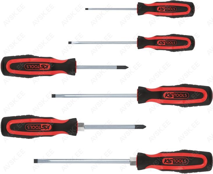 FUNKTSIOONID: kruvikeerajate komplekt kõrgeima kvaliteediga kroom-vanaadiumi terasest kruvikeerajatel on täiuslikult profileeritud libisemisvastased käepidemed kruvikeerajatel on magnetiline ots TEHNILISED PARAMEETRID: lapik kruvikeerajad: 2,0 x 50 mm, 3,0 x 50 mm, 2,5 x 50 mm, 5 x 75 mm, 6 x 38 mm, 6 x 100 mm, 8 x 150 mm ristkruvikeerajad: 5 x 75 mm, 6 x 38 mm, 6 x 100 mm, 8 x 150 mm, PH0 x ... 24 - osaline Valmistatud kvaliteetsetest materjalidest Profileeritud, mugav käepide Tugev kinnitusega ümbris Käepideme pikkus: 8,9 cm Phillipsi kruvikeerajad: 1,0 1,2 1,5 2,0 2,5 3,0 Lameda kruvikeerajad: 1,0 1,5 2,0 2,6 3,0 Torx kruvikeerajad: T2 T3 T4 T5 T6 T8 T10 Viie tärni kruvikeerajad: 0,8 1,2 Y-kujuline kruvikeeraja: 0,6 2,0 Kolmnurkne kruvikeeraja: 2.3 Punktkruvikeeraja