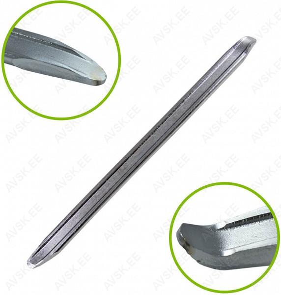 Galvaanilise erikihiga klassikaline heebel. mis valmistatud spetsiaalsest peenstruktuuriga tööriistaterasest. Tugevdussoontega. Lihvitud ja painutatud otstega. parema haarde tagamiseks rehvitöödel.