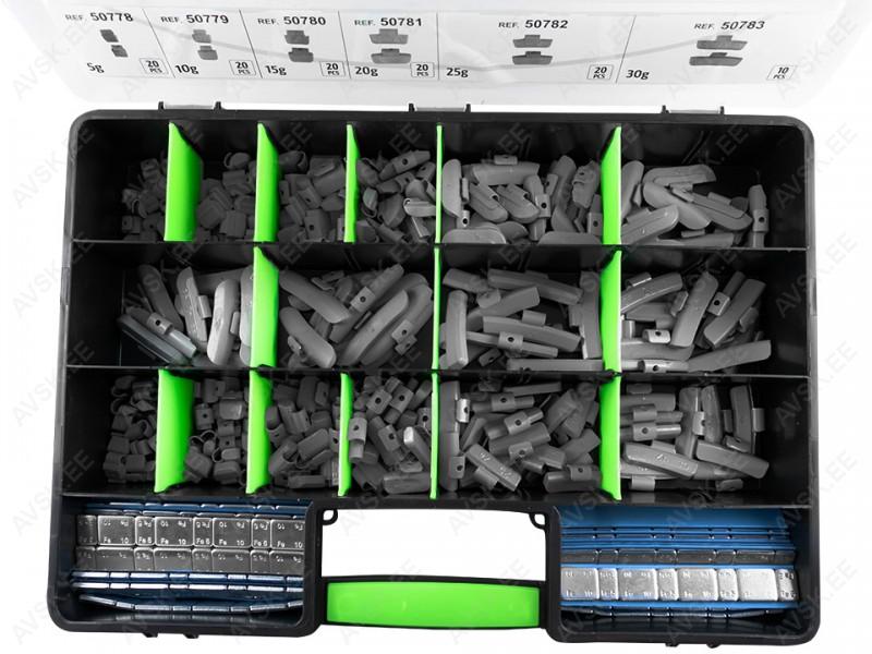 Väiketöökojale mõeldud ratta tasakaalude stardikomplekt. Sisaldab löödavaid- ja liimitavaid tasakaale. mis paigutatud korralikku plastkohvrisse. Liimitavad tasakaalud 4x5 g/4x10 g. löödavad tasakaalud 5-10-15-20-25-30 g.