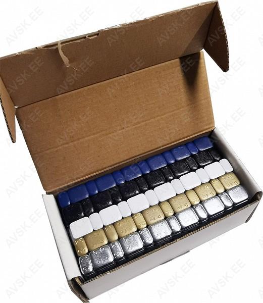Värvilised - 9 erinevat värvi - kleebitavad terasest (FE) tasakaalud mootorrataste velgedele. 45 g riba on jagatud 12 segmendiks - 6x5 g + 6x2.5 g. Pakendis 45 (9x5) riba.