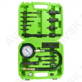 Universaalne diiselmootori kompressiooni mõõtmise komplekt. Sobib veokitele. sõiduautodele ja tehnika diiselmootoritele (külmikud. traktorid. kaatrid jne). Komplektis on mõõtekell ja adapterid. mille abil saab mõõta kompressiooni pihustiavadest ja hõõgküünla avadest. 0-70 bar. Kaasas adapterid küünla- ja pihustiavadele keermetega M8x1. M10x1. M10x1.25. M12x1.25. M18x1.50. M20x1.50. M22x1.50. M24x1.50. M24x2.0. Tugevas plastkohvris.