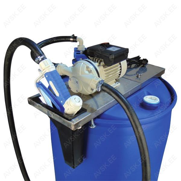 AdBlue tankimiskomplekt 208 l vaadile. Komplektis manuaalne püstol. 30 l/min. 5 m voolik. Mootor 230 V. Alus püstolihoidjaga (nõrgumisanum). Sobib ka diiselkütusele. Veoautod ja rasketehnika.