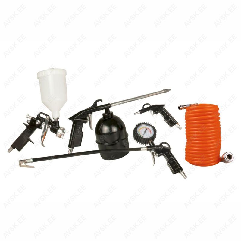 This complete air tool set is suitable for a wide variety of jobs in and around the house where air pressure is involved. For example: