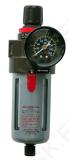 Vee-eraldi, eemaldab osakesed kuni 5µ, töörõhk 0,5-8,5 bar, max 9,5 bar, läbilaskevõime 1000 l/min, manuaalne vee eemaldus, rõhuregulaator/näidik. Seinahoidik