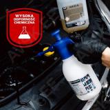 Professionaalne käsiprits Masner SPARO on detergentide ja keemiliselt aktiivsete leeliseliste ainete lahuste pealekandmiseks. Pritsi iseloomustab kõrge keemiline vastupidavus. kindel konstruktsioon ja kasutusmugavus. Tänu Viton® FPM tihenditele on see vastupidav õlidele. rasvadele. bensiinile ja teistele tugevatoimelistele kemikaalidele. Viton® tihend on spetsiaalne fluorikummist valmistatud elastomeer. Seda materjali iseloomustavad minimaalne takistuse vähenemine kuumuse mõjul. väga kõrge keemiline vastupidavus. mittesüttivus. madal gaasi läbilaskvus. vastupidavus madalrõhu tingimustele. kasutamise võimalus osoonikeskkonnas. vastupidavus UV-kiirgusele ja aromaatsetele süsivesinikele. Ei sobi kasutamiseks järgmiste ainetega: vesinikkloriidhape. naatriumhüpoklorit. leelised. viskoossed ja paksud vedelikud. vedelikud temperatuuriga üle 40°C.