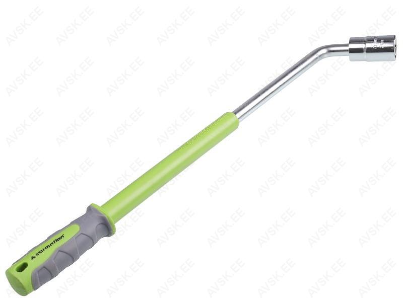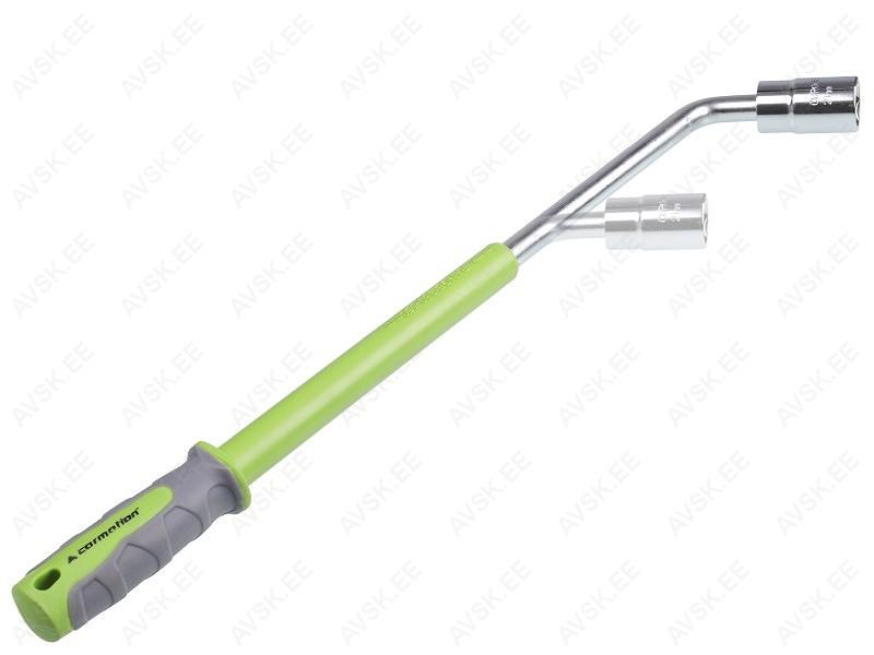 CrV terasest teleskoopvõti. mis on kaetud kaitsva kroomi ja kummikattega. Pikendatav 380-520 mm. Komplektis kaks kahepoolset padrunit: 17/19 mm ja 21/23 mm.