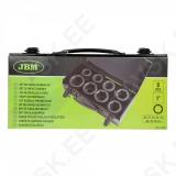 Korralik löökpadrunite komplekt oskuskasutajale. Sisaldab enamlevinud mõõte k.a rattamutrite mõõdud! Valmistatud spetsiaalsest molübdeeni sisaldavast eriterasest. Fosfaaditud pinnatöötlusega. 6-kant profiiliga. Tugevas metallkohvris.