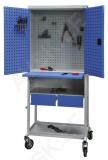 Tugeval keevisliitega metallraamil kapp. Kummikattega. metallsüdamikuga rattad. millest kaks on pööravad ja pidurduslukustusega. Seinad topeltplekist ja seestpoolt 100% perforeeritud. välispinnal küljed ja tagasein perforeeritud. Allosas avaneb riiuli kate ülestõstetavaks klapp-töölauaks. Lisaks kaks metallsahtlit. Raami allosas panipaik suuremate raskemate tööriistade ja rakiste asetamiseks. Kapi uksed lukustatavad. Mõõdud 1930x815x600 mm.