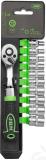 Hea komplekt. sisaldades kõik põhilised padrunimõõdud. 12-kant profiiliga padrunid. 72H tirrvõti. komposiitkäepidemega. Plasthoidikus.