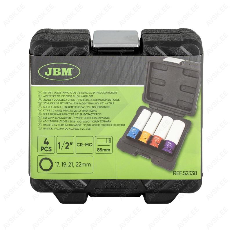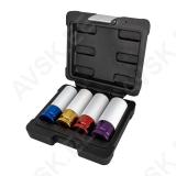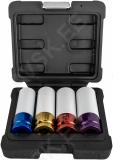 Hobikvaliteediga valuvelje löökpadrunid. plastkohvris. Komplektis mõõdud 17-19-21-22 mm. Padruni kogupikkus 85 mm. Kroom molübdeen eriterasest. Padrunid kaetud väljast plasthülsiga. vältimaks valuvelje poldiava värvikahjustusi.