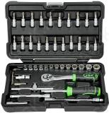 Korralik 1/4" padrunite ja padrunotsikute komplekt. Võrreldes paljude teiste tootjatega. sisaldab JBM komplekt ka padrunite keeramise T-võtit. Tirrvõti 72H on offset-komposiitkäepidemega. mis kergendab selle kasutamist. CrV eriteras. Matt pinnatöötlus. Uue põlvkonna tugevas plastkohvris.