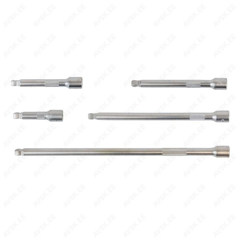 1/4" pikenduste komplekt. Ümardatud nelikantotsaga. mis võimaldab padruneid ja otsikuid keerata nurga all. andes seeläbi laiema kasutusvabaduse. Pikenduse varrel rihveldus. Kroom vanaadium eriterasest. Pehmes PU-paneelis.