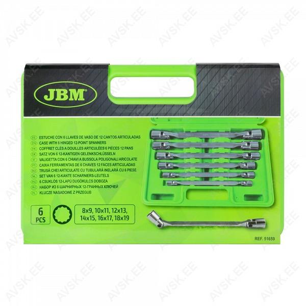 6-OS. KARDAANPADRUNVÕTMETE KOMPL. 12-KANT. PLASTKOHVRIS. 8-19MM JBM*