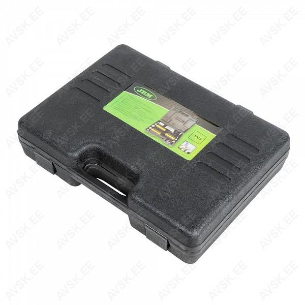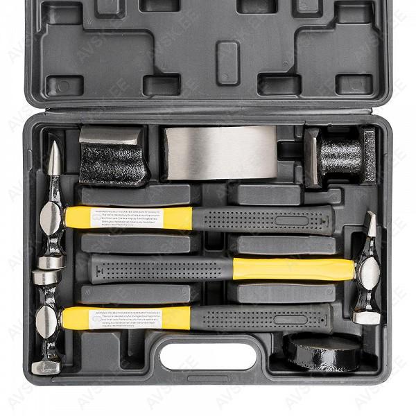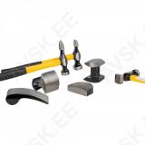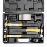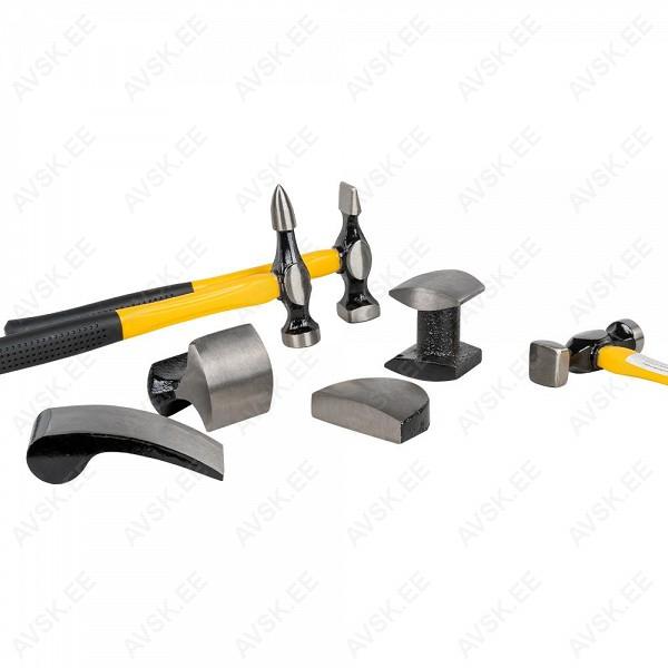 Plastkohvris plekkseppade üldtööriistade komplekt. Komplektis kolm fiibervarrega ca 450 g haamrit (teravots. lapik. pardinokk). Haamritele lisaks neli põhialasit. Sobib hobikasutamiseks või väiketöökotta.