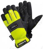 Sünteetilisestnahast Microthan®+ peopesa. teemant haardemuster. pealismaterjal polüester. Thinsulate™ 40g talve fliisvooder. hi-Vis neoonvärv. tuulekindel. veekindel. randme kumminöör 360°. kroomivaba. sobivad puuteekraaniga tööks. tugevdatud nimetissõrm ja sõrmeotsad. tugevdatud õmblused. eelkõverdatud sõrmed. sõrmenukkide kaitse. helkur.