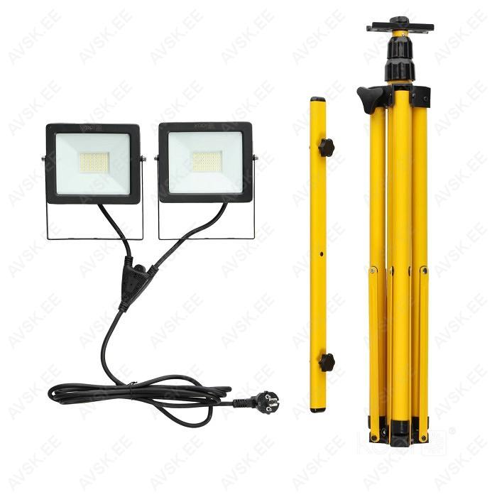 Kõrgel statiivil LED prozektor 2x30 W. Toitejuhe pikkusega 3 m (HO5RN-F 3x1 mm).