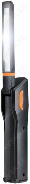 Kolm funktsiooni: ere / hämar / vilkuv tuli. Varustatud akudega (2 x 18650, 2200 mAh). Kaasas USB-laadimisjuhe. Mobiiltelefoni vms jaoks sobiv USB. Magnetiga sang, mis toimib ka reguleeritava tugijalana. Tehniline teave: Võimsus: 10 W COB LED, valgusvoog: 680 lm, ere / 210 lm hämar, kaitseklass: IP44, tolmukindel, kiirenurk: 120 kraadi, USB-ühendus: 5 V 1A, laadimisaeg: 6-7 h, tööaeg: 3 h (ere), 6...