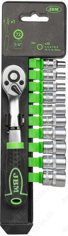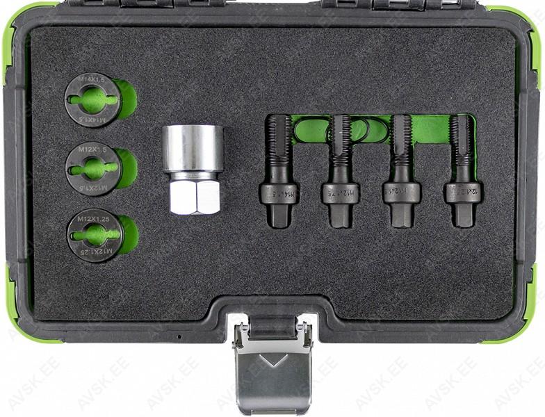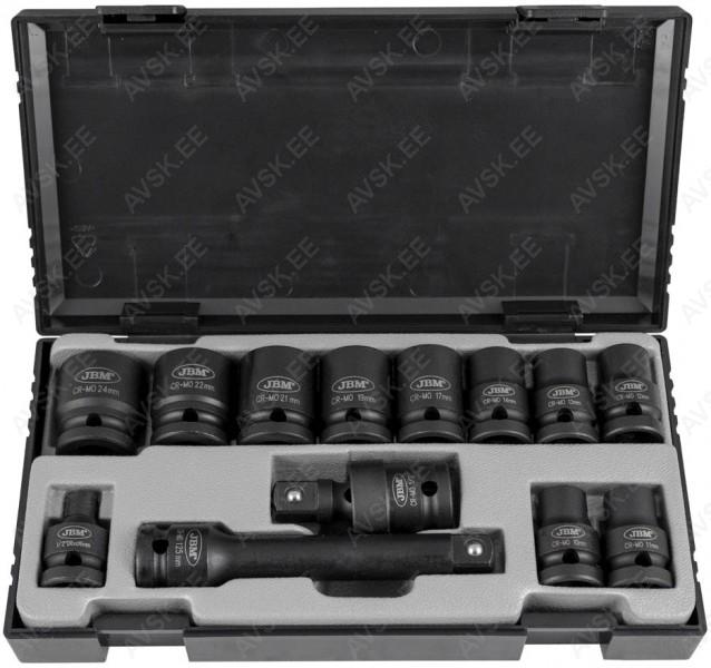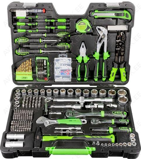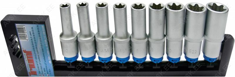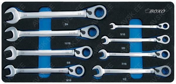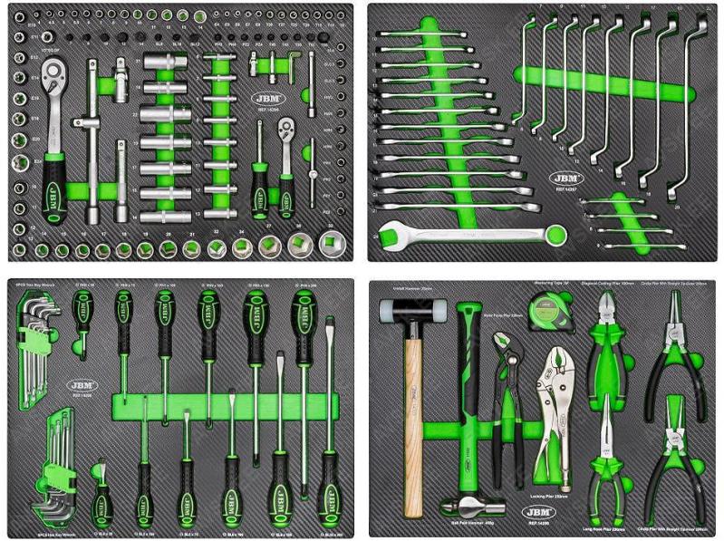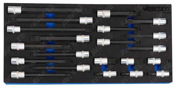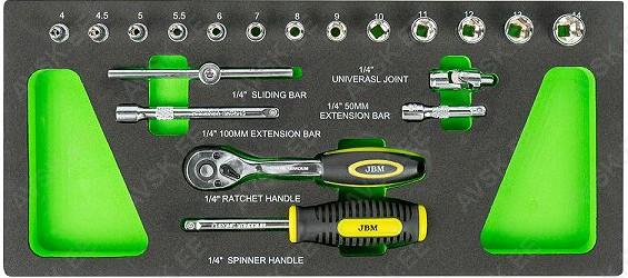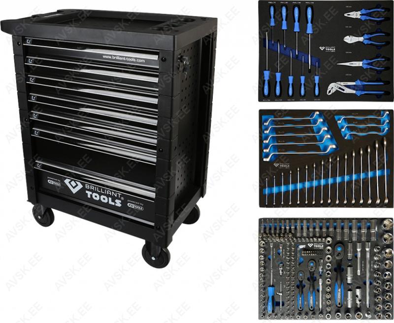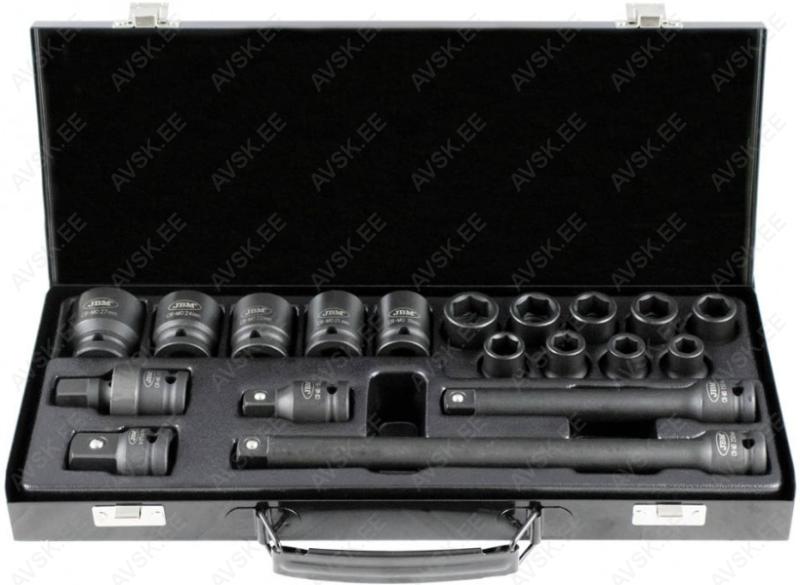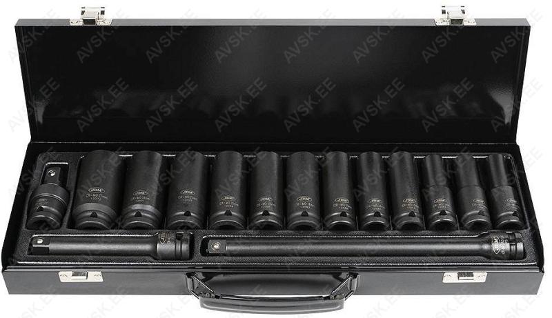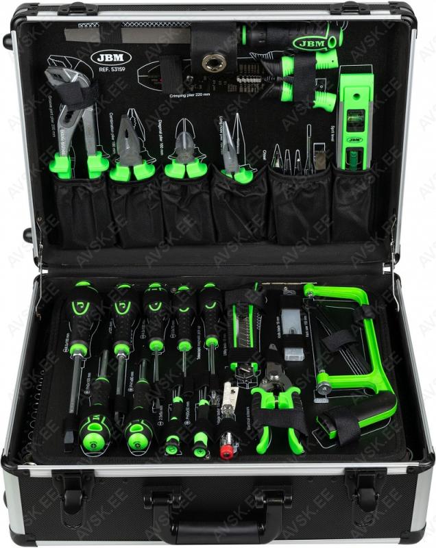 Komplektis mõõdud: 27, 29, 30, 32, 33, 34, 35, 36, 38, 41, 43, 46, 48, 50 mm Mõõdud: 66 mm / 6k, 74 & 76 mm / 15k, 76 mm / 8k, 76 mm / 12k, 76 mm / 14k, 86 mm / 16k, 86 mm / 18k, 92 mm / 10k, 93 mm / 15k, 93 mm / 45k, 96 mm / 18k, 106mm / 15k, 108 mm / 15k, 108 mm / 18k ja kolmijalka-avain 65-120mm. Adapteri 3/8" - 1/2". Mõõdud: 6, 7, 8, 9, 10, 11, 12, 13, 14, 15 16, 17, 18, 19, 20, 21, 22, 23, 24 mm Avainten räikkäpäät on varustettu innovatiivisilla tartuinkynsillä, jotka pystyvät tarrautumaan vielä jopa 85 prosenttisesti pyöristyneeseen pultinkantaan.Sisältää avainkoot 8, 9, 10, 11, 12, 13, 14, 15, 16, 17, 18, 19 mm Tööriistad asuvad pehmetes "EVA"-paneelides. Paneelide pesa on teist värvi, mis aitab märgata puuduva tööriista kuju. 15-Osainen sarja sisältää erikoislyhyet kiintolenkkiavaimet:- 8, 9, 10, 11, 12, 13, 14, 15, 16, 17, 18, 19, 20, 21, 22 mm Tööriistad asuvad pehmetes "EVA"-paneelides. Paneelide pesa on teist värvi, mis aitab märgata puuduva tööriista kuju. 21-Osainen XZN-hylsysarja sisältää:- 50 mm pitkät M5, M6, M8, M9, M10, M12- 95 mm pitkät M5, M6, M8, M9, M10, M12- 135 mm pitkät M5, M6, M8, M9, M10, M12- 195 mm pitkät M8, M10, M12 Tööriistad asuvad pehmetes "EVA"-paneelides. Paneelide pesa on teist värvi, mis aitab märgata puuduva tööriista kuju. 24-Osainen kuusiokolohylsysarja sisältää: - 50 mm pitkät 5, 6, 7, 8, 10, 12 mm- 95 mm pitkät 5, 6, 7, 8, 10, 12 mm- 135 mm pitkät 5, 6, 7, 8, 10, 12 mm- 195 mm pitkät 5, 6, 7, 8, 10, 12 mm Tööriistad asuvad pehmetes "EVA"-paneelides. Paneelide pesa on teist värvi, mis aitab märgata puuduva tööriista kuju. 24-Osainen Torx-hylsysarja 3/8" vääntiölla sisältää:- 50 mm pitkät T20, T25, T27, T30, T40, T45, T50, T55- 95 mm pitkät T20, T25, T27, T30, T40, T45, T50, T55- 135 mm pitkät T40, T45, T50, T55- 195 mm pitkät T40, T45, T50, T55 Alumiiniumkarkassil, alumiiniumkattega külgedega tööriistakast koos volditava põhjaga, lukustatav spetsifikatsioon: 1 lõikenuga 155 mm, tera 18 mm 10 varutera, 18 mm 1 universaalne mutrivõti, 200 mm 1 veepumbatangid , 250 mm 1 tangid, 175 mm 1 "telefoni" tangid, 200 mm 1 vesilood, 230 mm 1 mõõdulint, 15 mm x 3 m 1 reveresiga knarre 6.3 mm (1/4"), 72 teeth 1 pikendus, sise/välis mõõt 6....