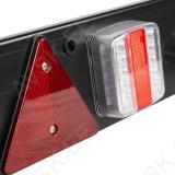 Tugevdatud HDPE plastist valmistatud tulede alusraam koos LED-tulede ja helkulkolmnurkadega. Kärudele. ratta vedamiseks. koorma vedamiseks jne. 12 V ja koos 7-pin kärupistikuga. 5 m pikkune kaabel. E4-7R-0218756.