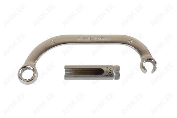 A specially shaped spanner and improved split socket for the Turbo pressure capsule and charge pressure actuatoron the turbo charged VAG models Additional Information The new deeper socket is specifically required for the later common rail diesel engines. Its design now allows use on both early and late pressure capsules. When removing the turbo charger special spanner 6670 will be required to loosen the oil feed pipe. Application: Golf Ml V1(2008 - 2013), Golf Plus (2004 - 2015), Jetta (2004 - 2010), Passat (2005 - 2010), Passat CC (2008 - 2012), Scirocco (2008 - 2017), EOS (2006 - 2015), Tiguan (2007 - 2018), Transporter T5 (from 2009) Equivalent to OEM T10422A, T10423 Manufactured from Chrome Vanadium