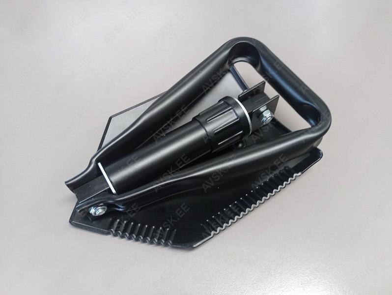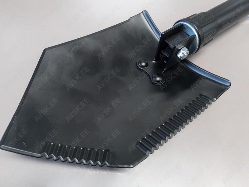 Kokku pakitav metallist väike labidas. mida on tänu oma mõõtmetele mugav kaasa võtta. Tugevast terasest tööosa. hammastusega. Pulbervärvitud. Tarnitakse tugevas tekstiilkotis. Valmistatud Poolas.