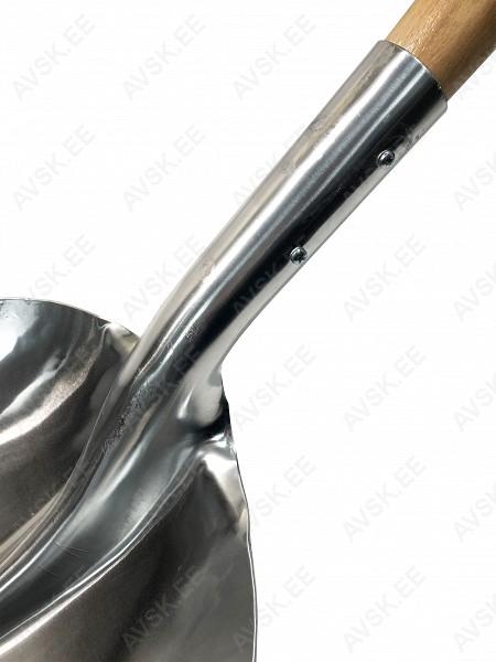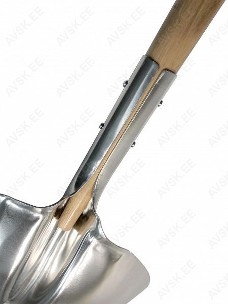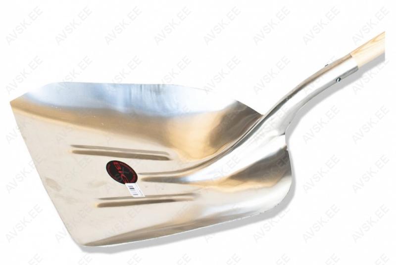 Alumiiniumist. puitvarrest ja plastikust käepidemega tugevdusega kühvel. Valmistatud Poolas.