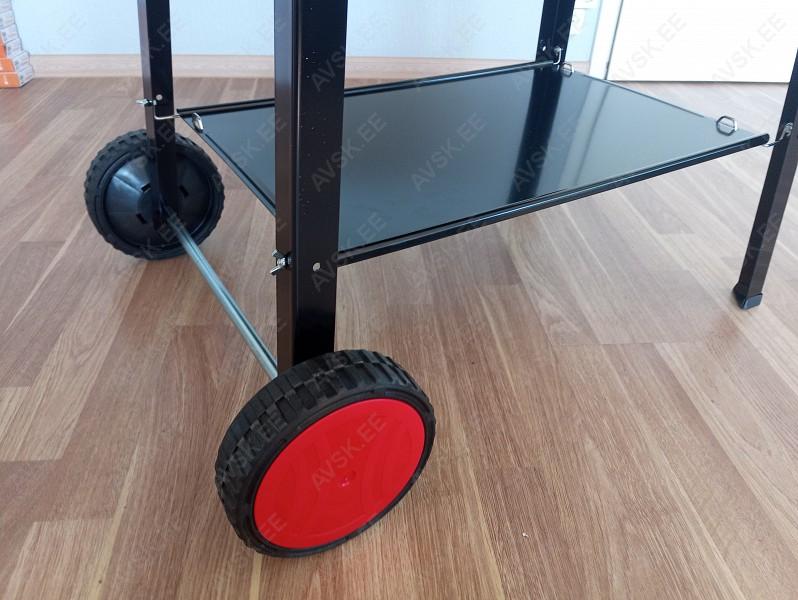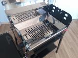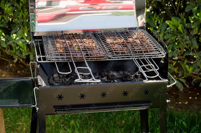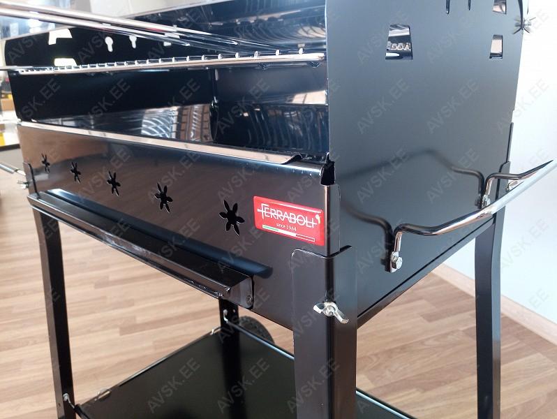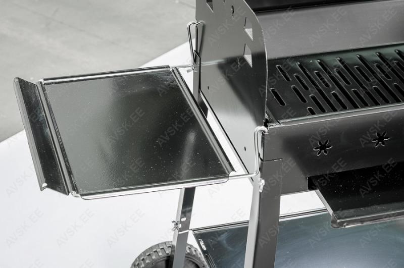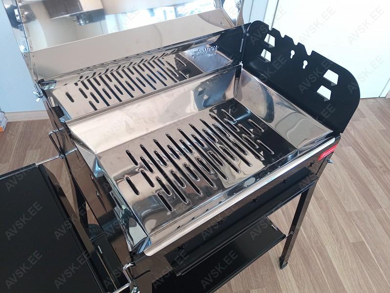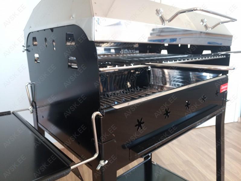 - Roostevabast terasest AISI 430 (spetsiaalne toiduainetööstuse) söevann ja kaas ning värvitud eriterasest jalad. küljed
