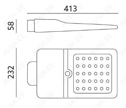 • Laius 232 mm. pikkus 413 mm. paksus 58 mm