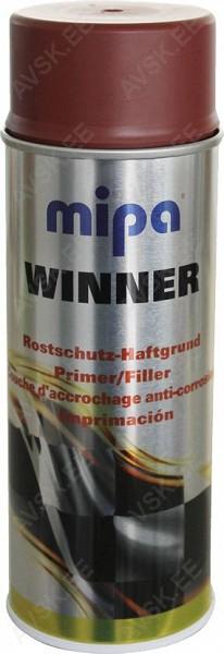 Saksamaal MIPA tehases valmistatud Winner seeria 1K kruntvärv aerosoolpudelis. Punakaspruuni värvi. Roostet elimineeriv ja rooste eest kaitsev. Hästi nakkuv ja ühtlaselt ning tihedalt kattev. Kiirelt kuivav. Spetsiaalne pihustuskork tagab ühtlase ja probleemivaba värvikihi. Ilmastikukindel. Profikvaliteet Saksamaalt!