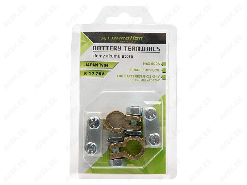 Nn Jaapani-tüüpi sõidu- ja pakiauto. põllumajandustehnika akuklemmide komplekt. Galvaaniliselt töödeldud. Max 600 A voolule. Praktiline ja vastupidav poltkinnitus. 12 V ja 24 V elektrisüsteemidele.