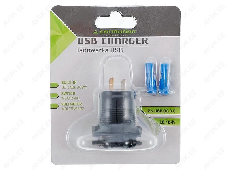 VOLTMEETER + 2XUSB LAADIJA 3.0A 12V LÜLITIGA. SÜVISTATAV CARMOTION