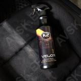 K2 VELOR PRO laepolstri puhastusvahend on ainulaadne. mugav. kasutusvalmis toode. mis ei vaja lahjendamist. Spetsiaalselt välja töötatud mustuse eemaldamiseks riidest polstrilt ja vaipadelt. Toode on täiesti ohutu puhastatavatele pindadele. K2 Velor Pro eemaldab tõhusalt plekid ja mustuse ega vaja loputamis. K2 VELOR PRO ei oma negatiivset mõju puhastatava materjali värvile ja struktuurile. See sobib ideaalselt katusevoodri käsitsi puhastamiseks nii mikrofiiber lapi või harjaga. K2 VELOR PRO on värske ja meeldiva mandariinilõhnaga.