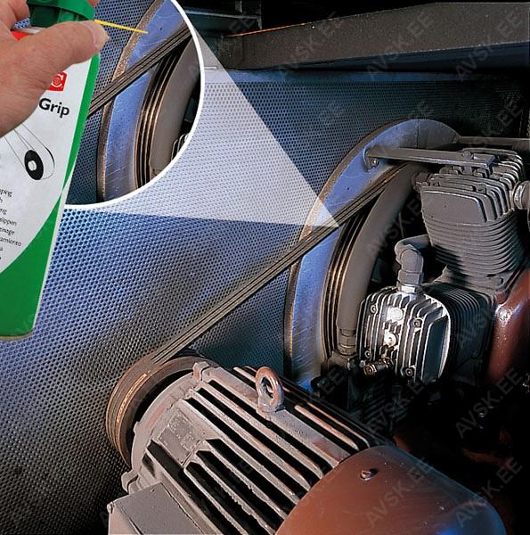Hästi nakkuv sünteetiline libisemise vähendaja ja hõõrdeteguri suurendaja kõikidele kiil-. lame- ja ümarrihmadele. rihm- ja lintülekandesüsteemidele. Väldib rihmade libisemist. suurendab nende veojõudu sõltumata materjalist ja kujust. kaitseb mustuse ja niiskuse eest. hoiab rihmad elastsena. vähendab müra. kulumist ja pikendab nende tööiga. Moodustab veekindla. kleepuva. mittekuivava kaitsekelme. Toode omab NSF H1 sertifikaati ja seda on lubatud kasutada toiduainete tööstuse piirkondades. kus võib esineda juhuslik kokkupuude toiduainetega. Toode on varustatud Perma-Lock® spetsiaalpihustiga. millel on 2in1 lahendus – kaks erinevat pihustusjuga (täppispihustus ja pihustamine suunamistoruga). Aerosoolpudelil on libisemiskindel päästik ning suunamistoru on integreeritud otse pihusti külge tagades kasutusmugavuse.