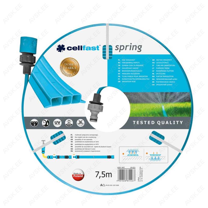 SPRING kastmisvoolik on kolmetoruline kastmisvoolik, mis tagab ühtlase kastmise kogu vooliku ulatuses, säästes nii vett kui ka aega.