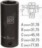 Kroom-vanaadium terasest sepistatud ja termiliselt töödeldud pikk löökpadrun professionaalseks kasutamiseks rehvitöökodades. Kaetud musta. roostekindla oksiidi kihiga. Padrunil lasergraveeritud mõõt. 6-kant profiil tagab kontakti külgedelt. mitte nurkadest hoides ära poldi/pea/mutri nurkade ümaraks kulumise.