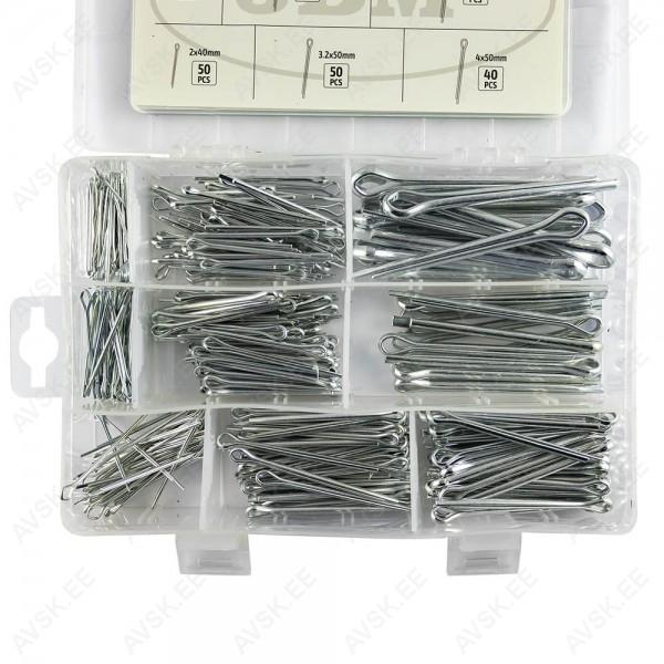 Enamlevinud splintide komplekt. Galvaanilise kattega. Komplektis mõõdud 1.2x25-1.6x32-2x50-2.5x40-3.2x40-3.2x50-4x50-5x63-6.3x63 mm. Plastkarbis.