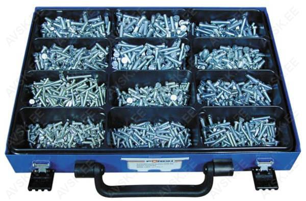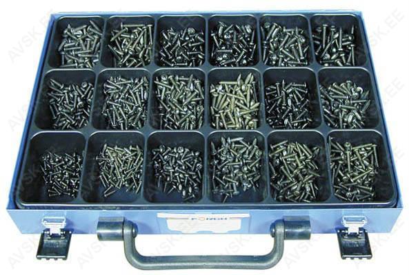 Sisaldab: DIN 7981 ümarpea 3,5x9,5 100tk 3,5x13 100tk 3,5x16 100tk 3,5x19 100tk 4,2x13 100tk 4,2x16 100tk 4,2x19 100tk 4,2x22 50tk 4,8x13 100tk 4,8x16 100tk 4,8x19 100tk 4,8x22 50tk DIN 7983 läätspea 3,5x16 100tk 3,5x19 100tk 4,2x16 100tk 4,2x22 50tk 4,8x19 100tk 4,8x22 50tk Sisaldab: 2,9x9,5 100tk 2,9x13 100tk 3,5x9,5 100tk 3,5x13 100tk 3,5x16 100tk 3,5x19 100tk 3,9x13 100tk 3,9x16 100tk 3,9x19 100tk 3,9x22 100tk 4,2x13 100tk 4,2x16 100tk 4,2x19 100tk 4,2x25 50tk 4,8x13 100tk 4,8x16 100tk 4,8x19 100tk 4,8x25 50tk Sisaldab: 2,9x13 100tk 2,9x16 100tk 3,5x13 100tk 3,5x16 100tk 3,5x19 100tk 3,5x22 100tk 3,9x13 100tk 3,9x16 100tk 3,9x19 100tk 3,9x22 100tk 4,2x13 100tk 4,2x16 100tk 4,2x19 100tk 4,2x25 50tk 4,8x13 100tk 4,8x16 100tk 4,8x19 100tk 4,8x25 50tk Sisaldab: 3,5x9,5 100tk 3,5x16 100tk 3,5x19 100tk 3,9x13 100tk 3,9x16 100tk 3,9x19 100tk 4,2x13 100tk 4,2x16 100tk 4,2x19 100tk 4,2x25 50tk 4,8x16 50tk 4,8x19 50tk Sisaldab: 4,2x13 100tk 4,2x16 100tk 4,2x19 100tk 4,8x16 100tk 4,8x19 100tk 4,8x25 100tk 5,5x19 100tk 5,5x25 100tk 5,5x32 50tk 6,3x19 50tk 6,3x25 50tk 6,3x32 50tk