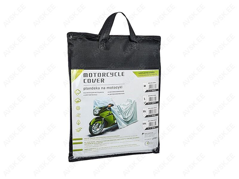 Kvaliteetne kate sobib suurepäraselt erinevatele väiksemate mootorrataste ja tõukerataste mudelitele. Spetsiaalne peegeldav kate kaitseb sõidukit nii intensiivse päikese kui lume eest ja puuvillane sisekiht muudab selle katte mitte ainult kvaliteedi poolest eristuvaks. vaid tagab ka pika kasutusea paljudeks aastateks. Kattel on 6 helkurriba. mis tagavad pargitud sõiduki suurepärase nähtavuse kõigis ilmastikutingimustes.