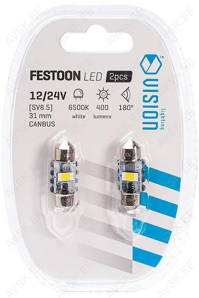 12/24V SV8.5-8 FESTOON LED PIRN 3.4W 31MM 6500K CANBUS VALGE BLISTER 2TK VISIONAV0025254513,97 €- +Lisa korviTehniline info:Sokkel SV8.5-8 C5W 31 mm LEDi tüüp 2x3570 SMDVärvus valgeVõimsus 3.4 WValgusefektiivsus 400 lmValgustemperatuur 6500 K Pinge 12/24 VCANBUS veateate eemaldajaKüsi toote kohta lisainfotNimi:e-post:Kommentaar: