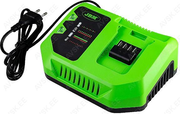 JBM akutööriistade akude automaatlaadija. DC-20 V. 6 A. Laeb 2Ah akud täis 30 min. 4Ah akud 60 min. 6Ah akud 90 min (Kõik +/- 10 min). Laadija testib laadimist alustades aku seisukorra ja vajadusel hoiatab LED tuledega võimalikest probleemidest.