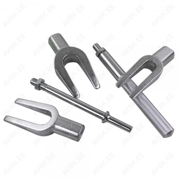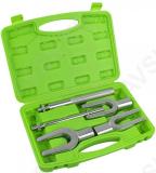 Kuulliigendi löökkahvlite avamise komplekt. Sisaldab 3 kahvlit ja nende külge keeratavat löökpidet vasaraga löömiseks ja pneumomeisli jaoks. Detailid on valmistatud kroomvanaadium karastatud terasest ja galvaaniliselt kaetud. kaitsmaks korrosiooni vastu. Plastkohvris.