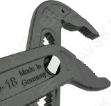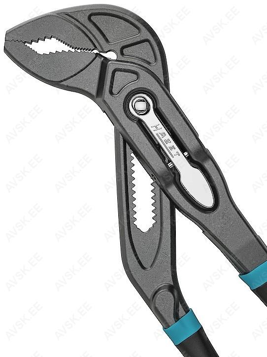 Valmistatud sepistatud CroMo-st. Fosfaaditud pinnatöötlus. Libisemiskindla 2K-plastkattega pidemeosa. Fikseeruva hammastusega reguleerimine. Lukustuse vajutamiseks ei pea kasutama kahte kätt. Made In Germany.