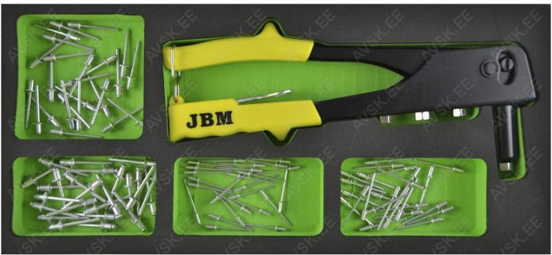 Spetsiaalses pehmes EVA paneelis tõmbeneedi tangid koos enamlevinud neetidega. Saab kasutada tööriistakärus või lauasahtlis. Foam-paneeli mõõdud 175x380 mm. paksus 30 mm.